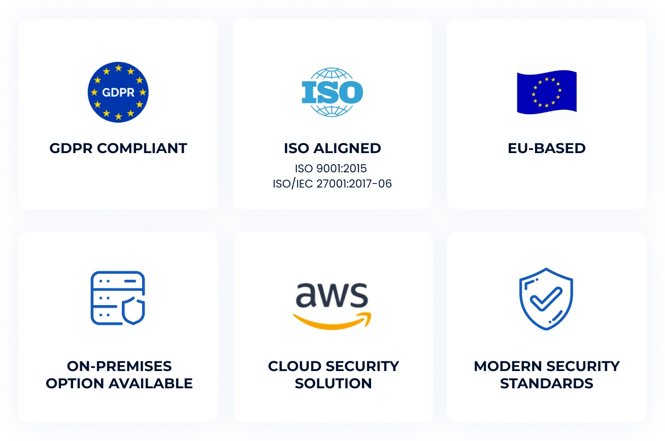 Our platform provides modern security standards enabling encrypted connections and protected access to data. We're aligned with up-to-date safety standards like ISO, FISMA, PCI. On-premises safety solutions are also an option.