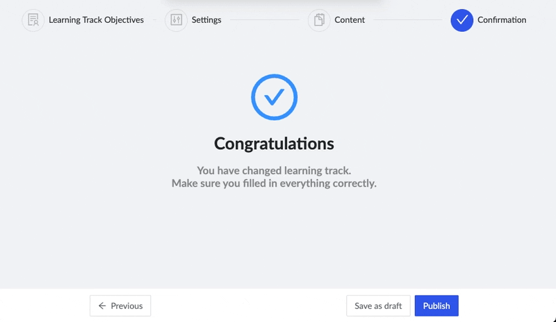 Make sure you’ve made all the changes and you’re ready to publish the new version of Learning Track.