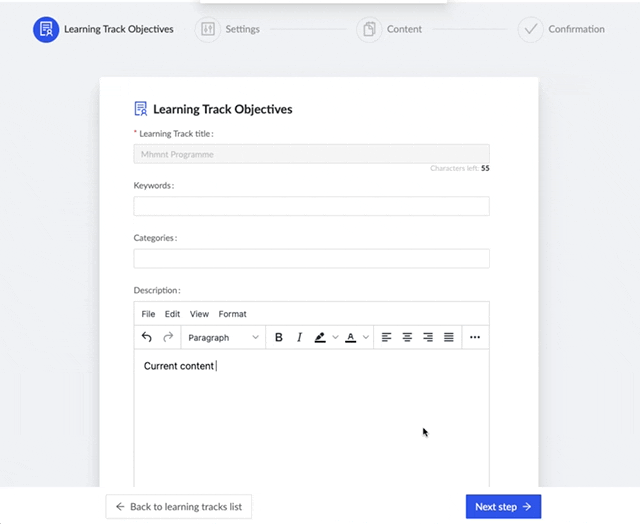 You will be transferred to the editing window that allows you to modify the current learning track.