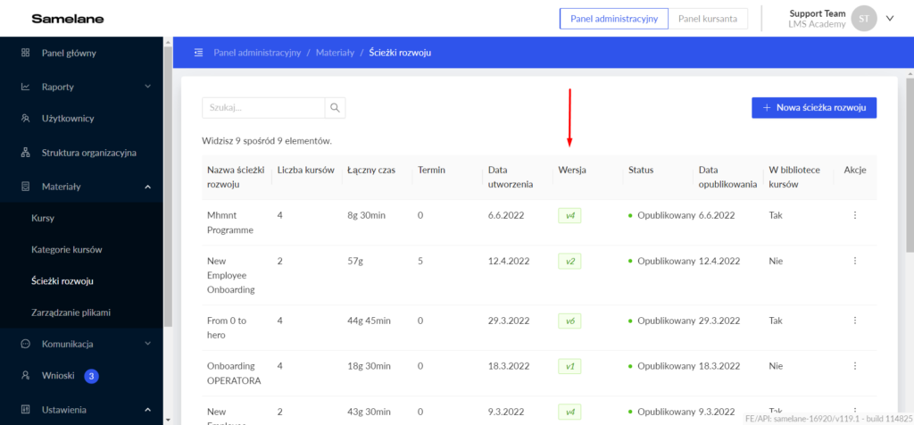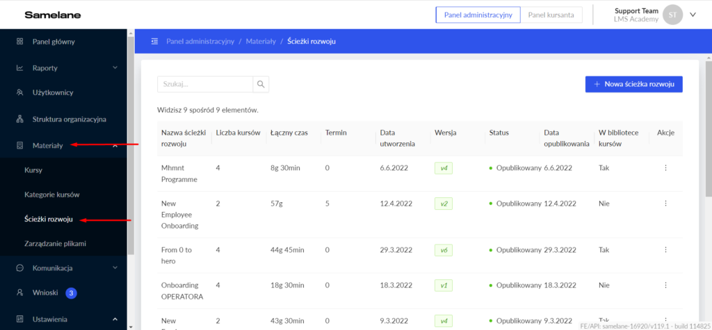 Aby to zrobić, przejdź do Panelu administratora > Materiały > Ścieżki rozwoju.